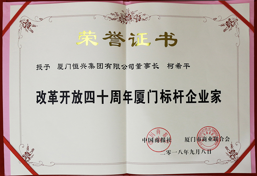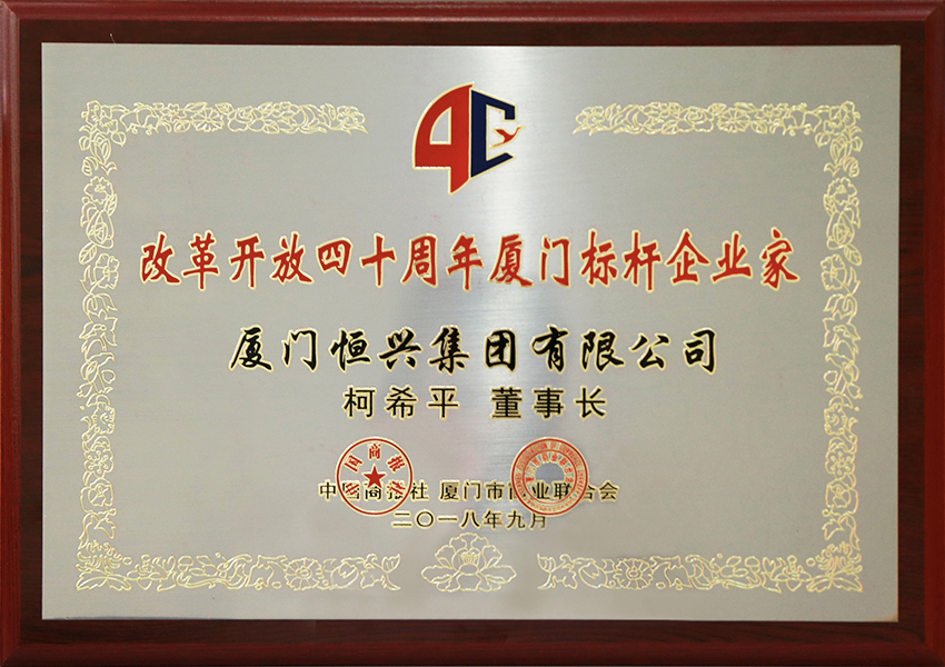 恒興集團(tuán)柯希平董事長榮獲 “改革開放四十周年廈門標(biāo)桿企業(yè)家”榮譽稱號
